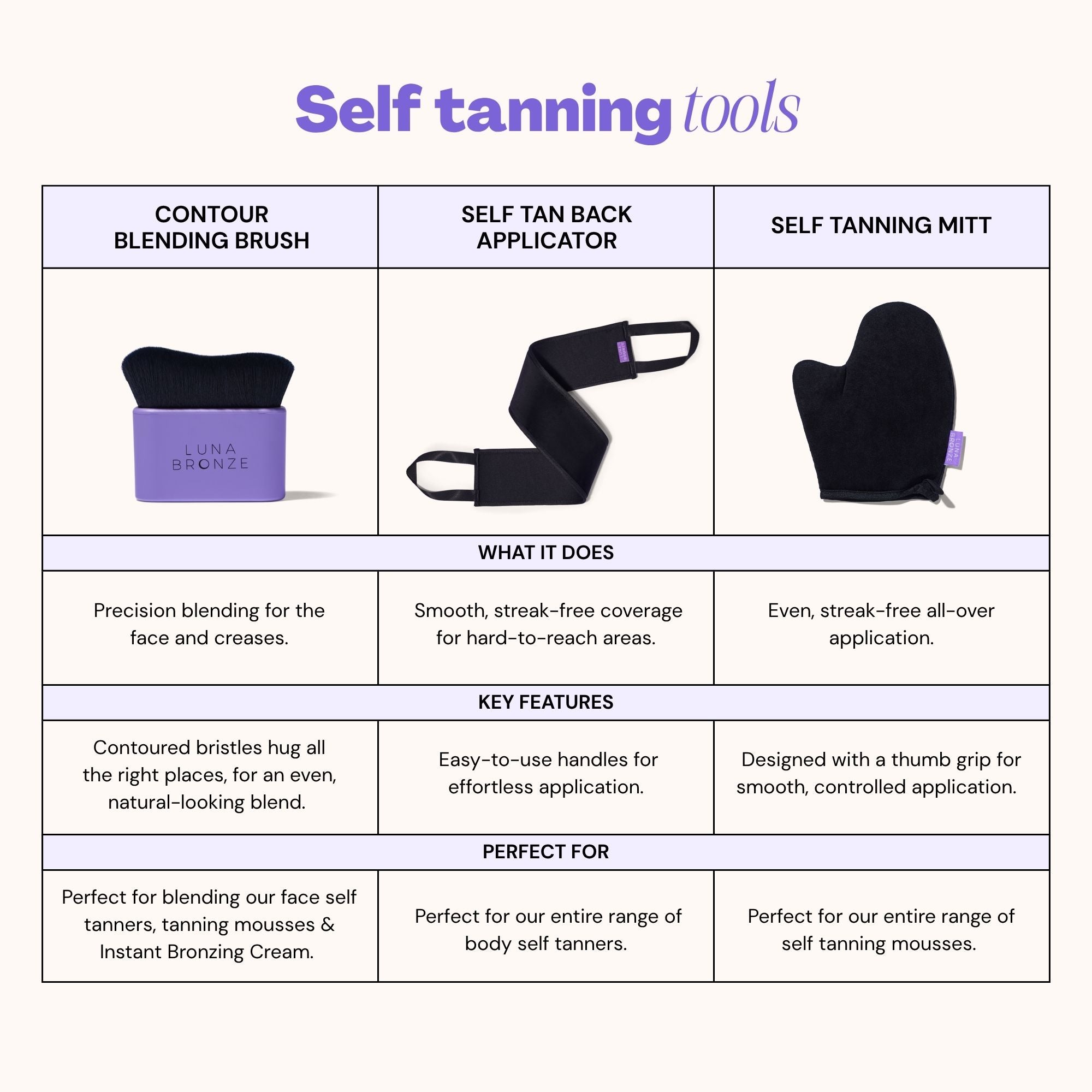 Designed to be used on your face and body (because we LOVE a versatile tool), our contour brush will seamlessly blend in your tan, whether you’re after an all-over glow or some subtle bronzey contour. Plus, like all our LB glow goodies, it’s vegan and cruelty-free.